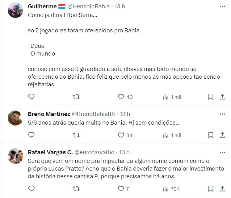 Sem um camisa 9, o argentino Lucas Pratto, de 34 anos de idade, ex-Atlético-MG e São Paulo, foi oferecido ao Bahia de Rogério Ceni, conforme informações de Jonas Stelmann.