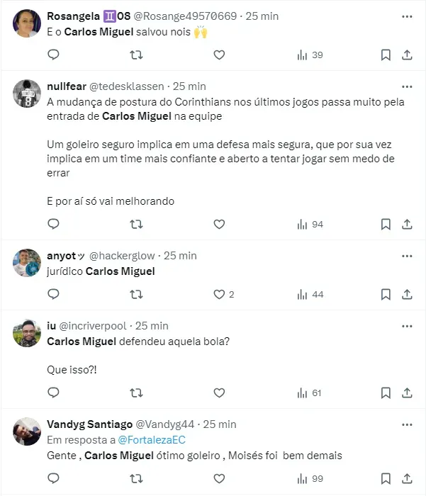 Se para a torcida do Fortaleza, João Ricardo foi o herói, não foi diferente para a do Corinthians com Carlos Miguel, que para muitos, provou o porque merece a titularidade no gol alvinegro.