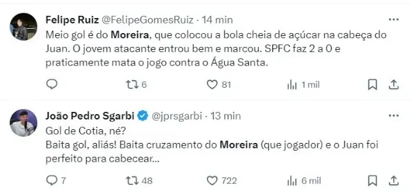 “O Moreira é o novo Cafu”. “Moreira: futuro titular do São Paulo nesta temporada. Ponto final e não há discussão”. “Carpini tem dor de cabeça, Moreira vai ser titular essa temporada”.