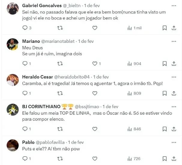 “Óscar Romero tem ofertas formais de #Corinthians l, onde joga seu irmão, e também de #Olimpia no Paraguai. Economicamente, duas ofertas inatingíveis para #SanLorenzo , que busca seduzi-lo com o desafio da Copa Libertadores”, trouxe no X (antigo Twitter).