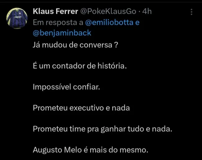 Inclusive, hoje (14), o novo presidente do Corinthians, Augusto Melo, deu detalhes sobre as especulações ligando o camaronês ao Timão, afirmando que de fato existiram conversas.