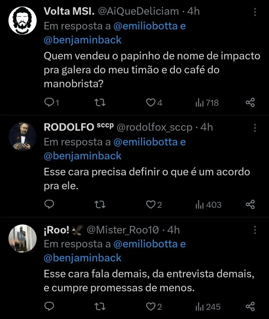 “Vem um nome com características do Corinthians, não vamos atrás de estrelas. Todo jogador é uma aposta, mesmo estrela. O Aboubakar foi oferecido, até chegamos a um acordo, mas as coisas mudaram“.