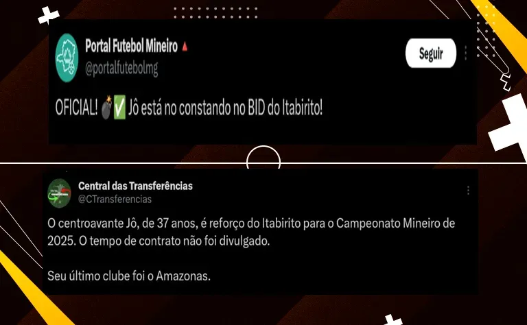 Ainda de acordo com a publicação, o tempo de contrato não foi revelado. Entretanto, o Itabirito conta com o futebol de Jô para disputar o Campeonato Mineiro de 2025.
