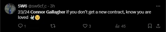 Nesta temporada, Connor Gallagher soma 49 jogos pelos Blues e registra sete gols e nove assistências. No Chelsea, o camisa 23 é o quarto melhor marcador da equipe e segundo maior assistente do elenco.