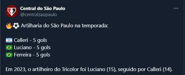 Vale deixar claro que os líderes da lista são Rogério Ceni e Luis Fabiano, ambos com 14 tentos anotados. Quer dizer, além de se isolar como 3°, Calleri pode até sonhar em ultrapassar as duas lendas do Clube. O jogo ocorre nesta quinta-feira (25), às 21h.