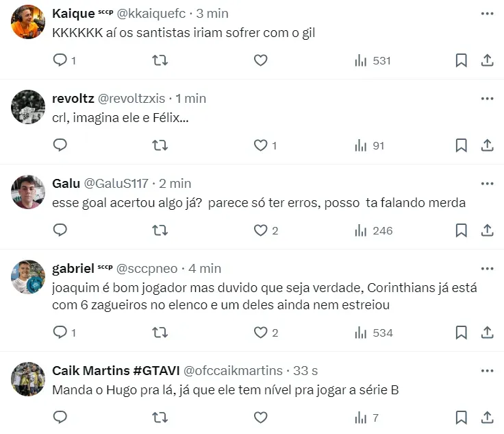 A situação de Joaquim com o Santos é de um contrato que vai até o ano de 2026. Por ser um dos grandes nomes do elenco do Peixe, o Timão pode ter muita dificuldade em tirá-lo do rival.