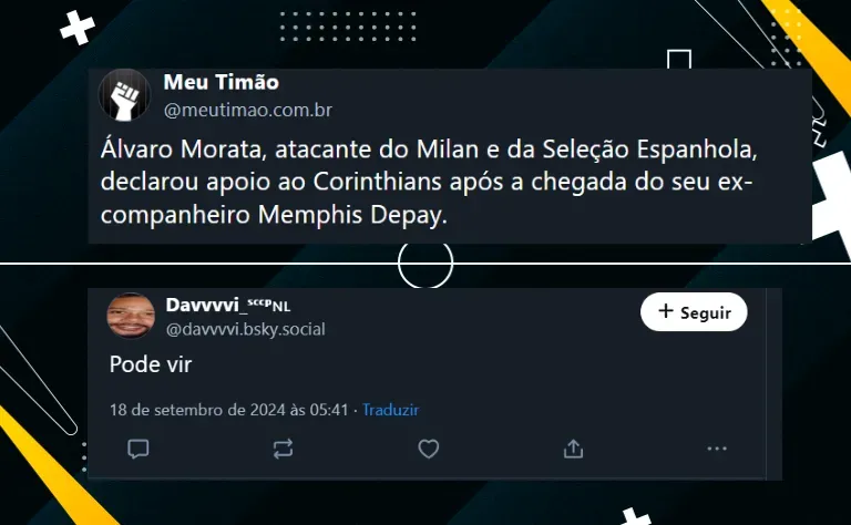 O espanhol Morata surgiu como uma opção de contratação para o Corinthians em 2025, depois do atacante do Milan revelar que está torcendo para o Timão no Brasil devido a contratação de Depay.