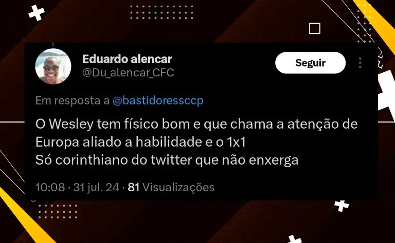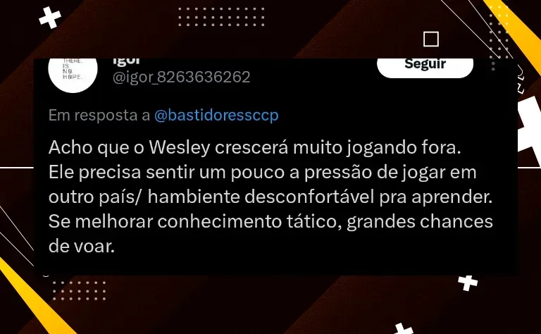Apesar de ser um dos principais jogadores do Corinthians na temporada, o jovem atacante Wesley perdeu espaço no Alvinegro. O técnico Ramón Diaz tem lhe deixado no banco de reservas e tem optado por outros atletas.