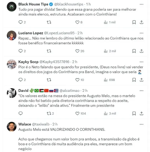 A briga para as empresas conseguirem os direitos de transmissão do Corinthians continuam forte e a gestão comandada por Augusto Melo tem analisado friamente os interessados. Agora, Timão tem em mãos uma proposta da TV Globo de R$ 300 milhões.