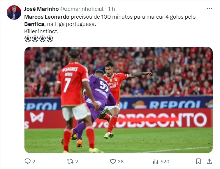 O jogador, mais uma vez, foi determinante no Benfica ao deixar o banco e marcar o sexto gol dos 6 a 1 diante do Vizela, no último domingo (18), pela Liga Portugal. Vale destacar que o atleta vem conseguindo se destacar na equipe.