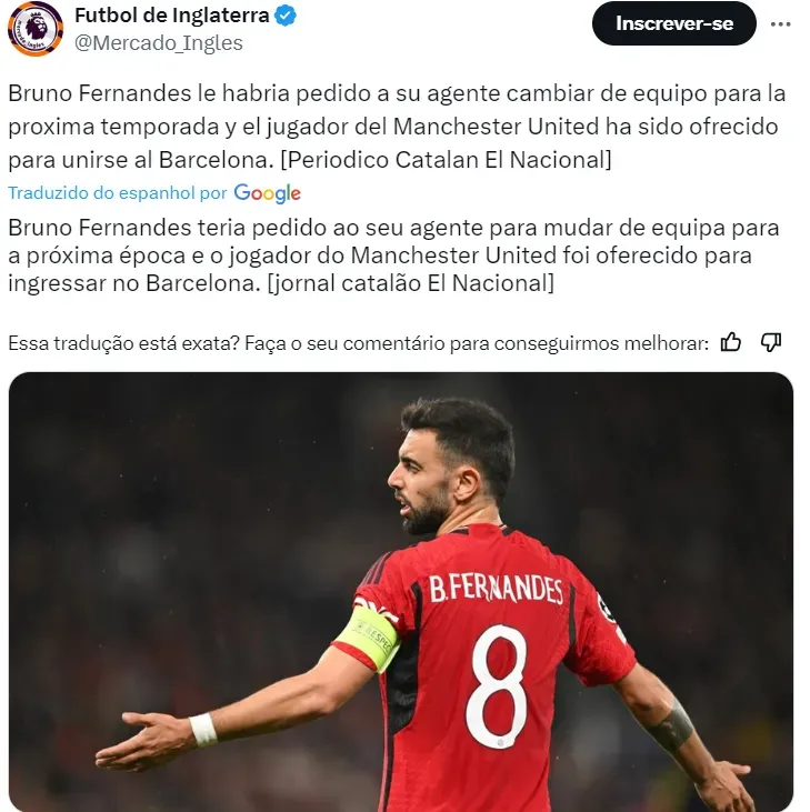 O Barça ainda não respondeu a possibilidade de contar com o futebol de Bruno Fernandes, mas, por se tratar de um grande jogador de classe mundial, o time espanhol pode se interessar.