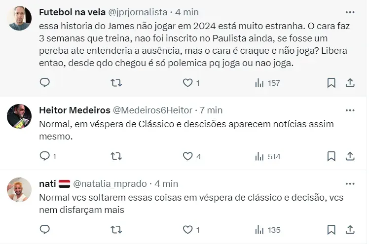 James tem contrato com o time paulista até o ano de 2025 e o clube ainda confia no futebol do atleta, apesar do jogador ainda não ter conseguido brilhar no futebol brasileiro.