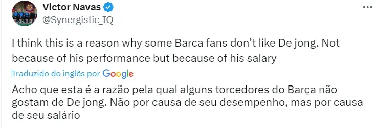 O salário anual de De Jong ultrapassa a marca de 30 milhões de euros. Ele é o atleta mais bem pago do elenco do time de LaLiga, acima, inclusive, de Lewandowski, principal jogador da equipe.