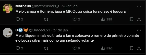 Entretanto, diferente de Romero, a situação dos jogadores não tão simples. Ramiro se recupera de uma lesão no joelho, ou seja, a equipe mineira terá cuidado com o meio-campista.