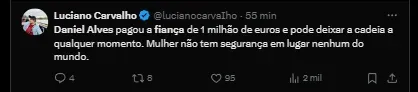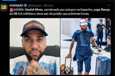Dani teria pagado sua fiança e pode deixar o presídio a qualquer momento desta segunda-feira. O valor estipulado para a fiança do ex-atleta foi na casa do 1 milhão de euros (aproximadamente R$ 5,4 milhões).
