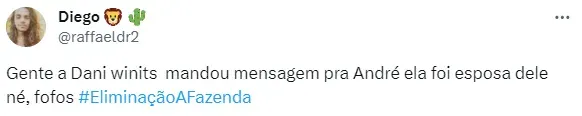 Enquanto André ainda estava confinado em A Fazenda, Danielle chegou a declarar torcida publicamente para, na época, seu ex-marido. Em entrevistas, a famosa o elogiava como pessoa e também como pai.
