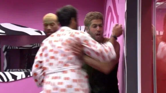 Na briga do BBB14, Cássio acusou Marcelo de assédio a outro participante. Outros participantes tiveram que segurar os brothers.