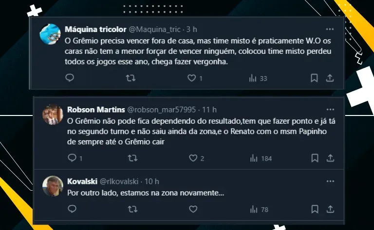 Todavia, com os triunfos de Vitória e Criciúma na noite de ontem (3), o Imortal voltou ao Z-4 e o número de críticas em relação à opção de Renato Portaluppi aumentou muito entre os gremistas.
