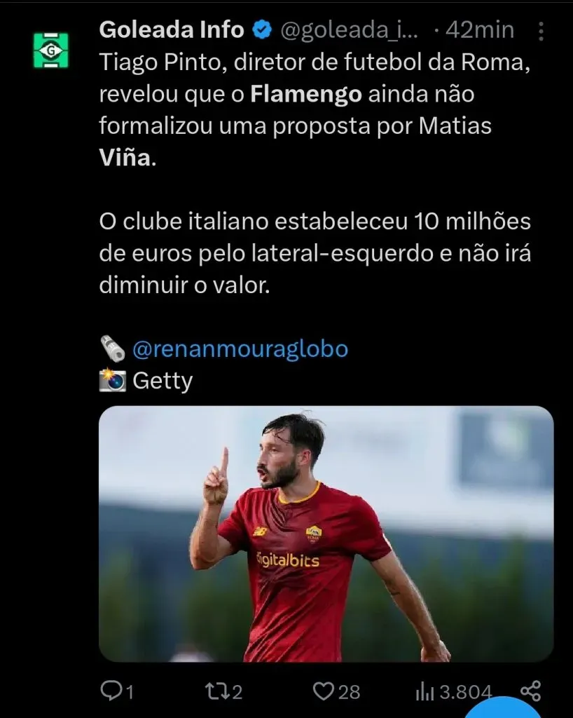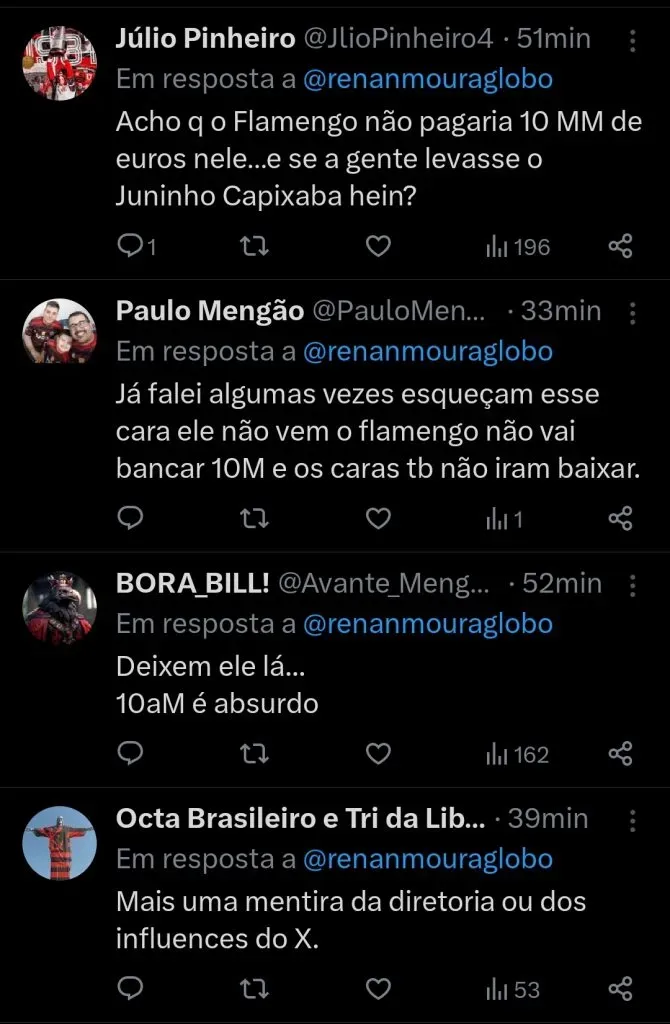 Grande parte da Nação considera que 10 milhões de euros (em torno de R$ 49 milhões) são cifras altas para o Fla avançar na contratação de Matias e pedem para que o clube recue.