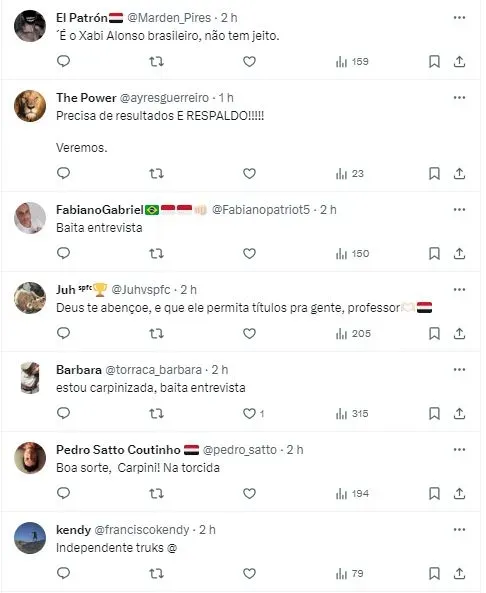 A chegada teve o aval de Muricy Ramalho, que fez questão de detalhar contratação do treinador. Contudo, nesta segunda-feira (15), Carpini concedeu sua primeira entrevista coletiva e abordou aspectos que caracterizam o elenco que tem em mãos.