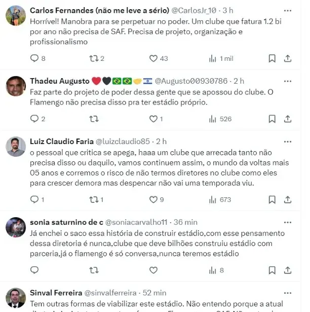 “Se a gente botar uma dívida de R$ 1 bilhão no nosso balanço, óbvio que alguém vai olhar que há um risco muito maior de não pagar. Custo de capital vai crescer. Não existe nenhum jogador que o Flamengo não tenha comprado em suaves prestações. O cara olha para o nosso balanço e fala: “Pelo amor de Deus, o Flamengo vai pagar”. Mas se você endivida o clube para fazer estádio, aí não”, concluiu.