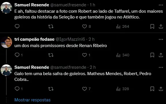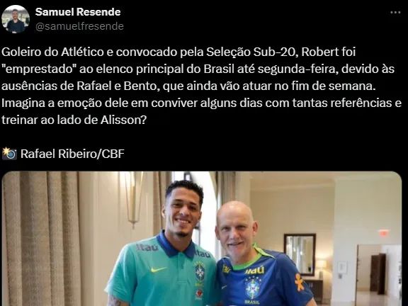 Robert vem sendo frequentemente relacionado pelo técnico Gabriel Milito no Atlético Mineiro. Embora seja a terceira opção, atrás de Everson e Matheus Mendes, o prodígio de 19 anos está em Orlando com a Seleção.