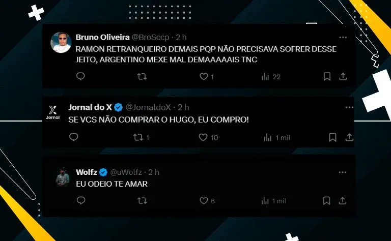 Houve críticas ao desempenho da equipe no segundo tempo e pedidos por reforços, com ênfase no destaque do goleiro Hugo Souza. “O Ramon ainda não aprendeu a lição. Precisamos investir mais e garantir que jogadores como Hugo permaneçam conosco. É um investimento que vale a pena,” desabafou um torcedor.