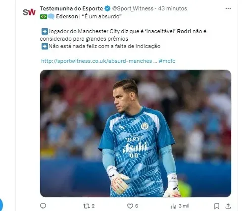 Ederson destacou que Rodri tem sido uma peça fundamental no sucesso do Manchester City, e sua ausência na lista de indicados é algo absurdo, questionando os critérios utilizados para a seleção dos jogadores.