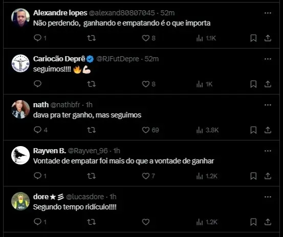 O Tricolor começou a pressionar mais após empatar. Welington finalizou para boa defesa de John, na sequência, a bola sobrou para Luiz Gustavo que arriscou de fora da área, mas a bola saiu em linha de fundo.