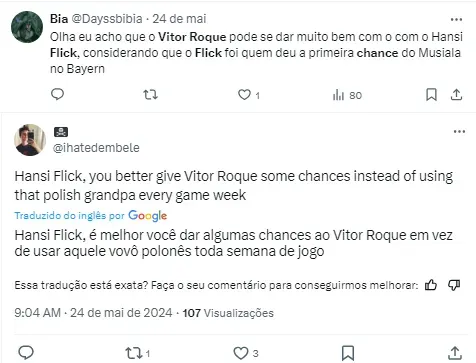 Com a saída de Xavi e a chegada do alemão Hansi Flick, a expectativa é que tudo mude para Vitor Roque. Durante a entrevista, Cury chegou a citar Vinícius Júnior, hoje um dos destaques do rival Real Madrid, como exemplo.
