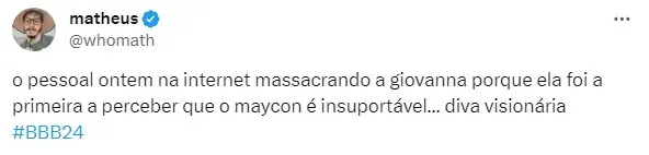 “O ódio que o povo tem das padrões gente, credo”, escreveu a ex-sister do BBB 22, que posteriormente se retratou: “Apaguei o tweet só porque estavam tirando de contexto, mas quem estava assistindo entendeu”.