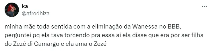 Intencionalmente ou não, Wanessa acertou um soco no pé do rival e acabou sendo desclassificada poucas horas depois. Ao site QUEM, o irmão de Luciano disse que encontrará com a filha em breve.