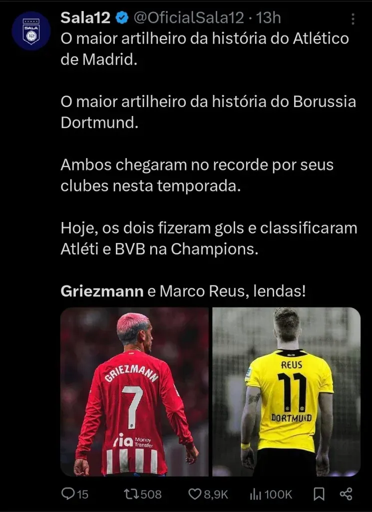 Junto com o Atlético de Madrid também avançam para as quartas de final os seguintes times: Bayern, PSG, Real Madrid, City, Arsenal, Barcelona e Borussia.