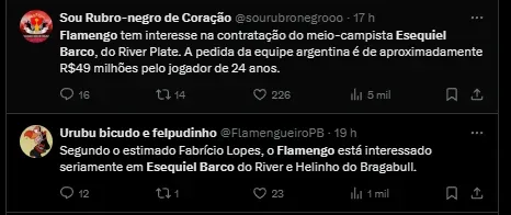 Dois atletas que surgiram nos bastidores da Gávea seriam o meia-atacante argentino Esequiel Barco, do River Plate, da Argentina, e o atacante Helinho, do Red Bull Bragantino. A informação do interesse do CRF na dupla foi trazida por Fabrício Lopes