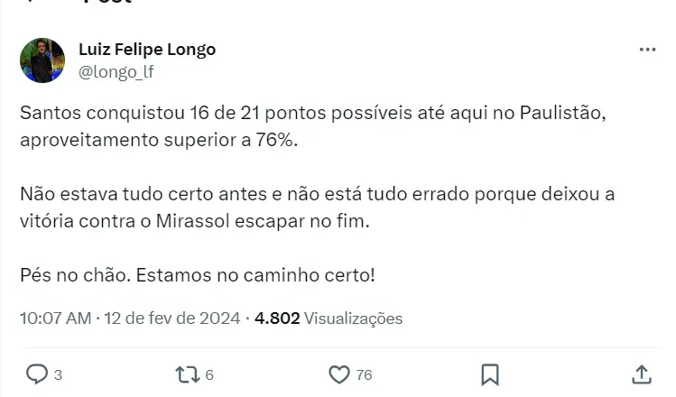 Entretanto, vem repensando em alguns acordos já fechado. Jorge, que pertence ao Palmeiras, foi emprestado ao Alvinegro Praiano até o fim da temporada, mas vem se recuperando de uma lesão sofrida quando defendia o Fluminense na temporada passada.