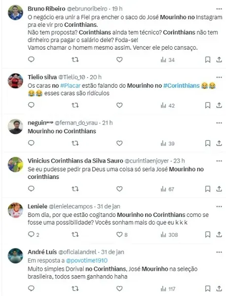 “Ao invés de dar R$ 4 milhões pro Matheuzinho, engorda na proposta pro Mourinho”, disse Sormani, na Placar TV, que viu Flavio Gomes seguir: “O Mourinho conhece o futebol brasileiro, gosta do Brasil, tá desempregado… é pegar o telefone e ligar para ele”, completou.