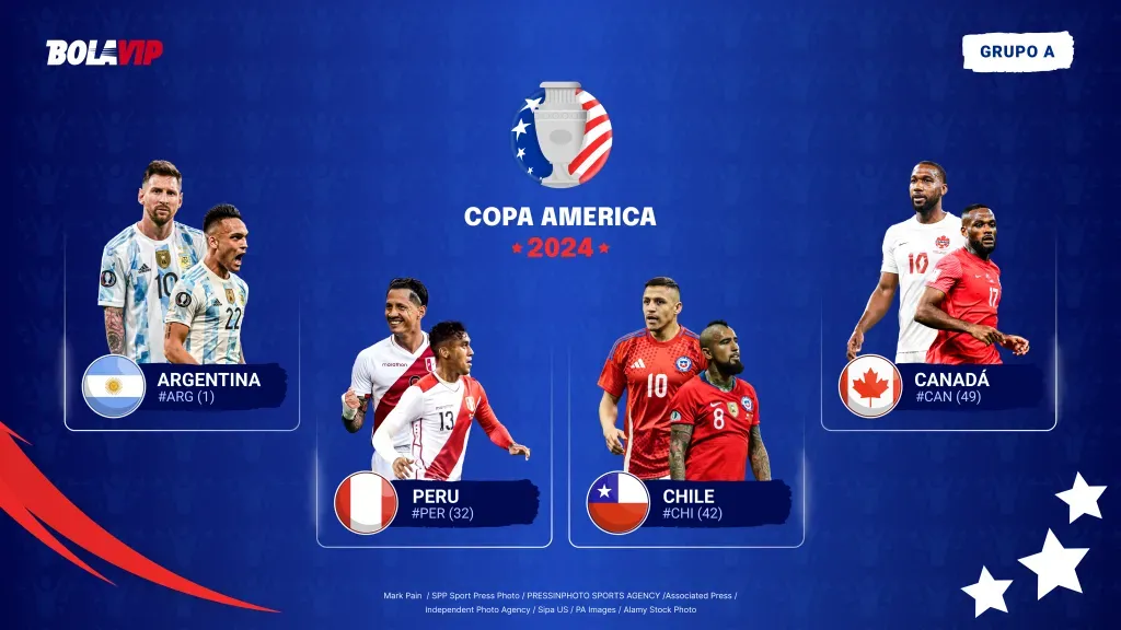 Dentre os seus jogadores, destacamos Messi (Inter Miami – EUA), Garnacho (Manchester United – ENG) e Di María (Sport Lisboa e Benfica – POR). A Argentina faz parte do Grupo A, e faz seu primeiro jogo no dia 20 de junho. Isto é, na abertura da Copa América, contra o Canadá.