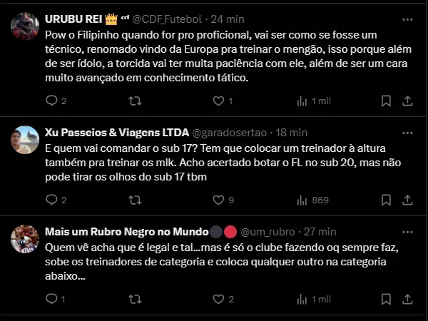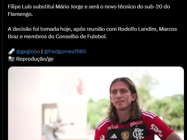 O técnico Mário Jorge deixou o clube carioca para comandar o sub-17 da Arábia Saudita. Desta forma, ficou uma lacuna no sub-20. Filipe Luís é o cara para preencher esse espaço.