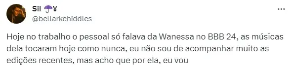 Em seu perfil no X (antigo Twitter), o atleta Hadson Nery, que participou do reality na edição de 2020, afirmou estar preocupado com a nova dinâmica. Logo após o anúncio de Wanessa, ele se manifestou.