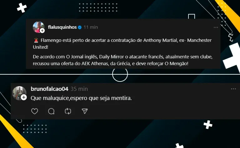 A reportagem não entra em maiores informações sobre a aproximação de Martial com o Flamengo, apenas frisa que o atacante recusou a abordagem do AEK com intuito de jogar no clube mais rico do Brasil.