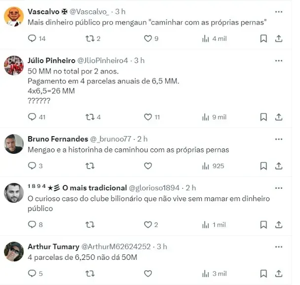 “O MRN teve acesso aos contratos que solidificam a parceria iniciada em 2020. O primeiro e mais simples trata apenas do patrocínio do BRB ao clube. Para expor sua marca nas omoplatas (ombros) das camisas do futebol masculino e feminino, profissional e na base, o banco vai pagar R$ 25 milhões anuais. O contrato tem validade de dois anos e vai até março de 2026”, escreveu o portal.