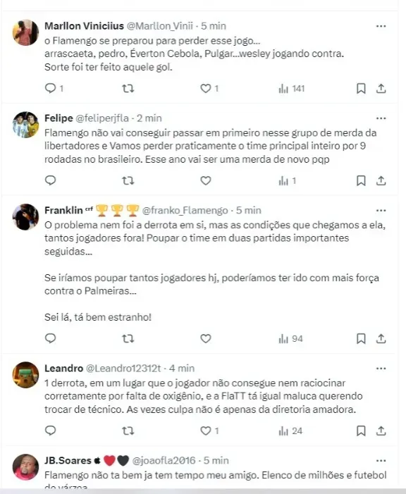 O resultado ruim não deixou boa parte da torcida do Flamengo irritada. Alguns, inclusive, foram as redes sociais defender o treinador Tite e também as últimas atuações do clube Rubro-Negro – veja os comentários abaixo.