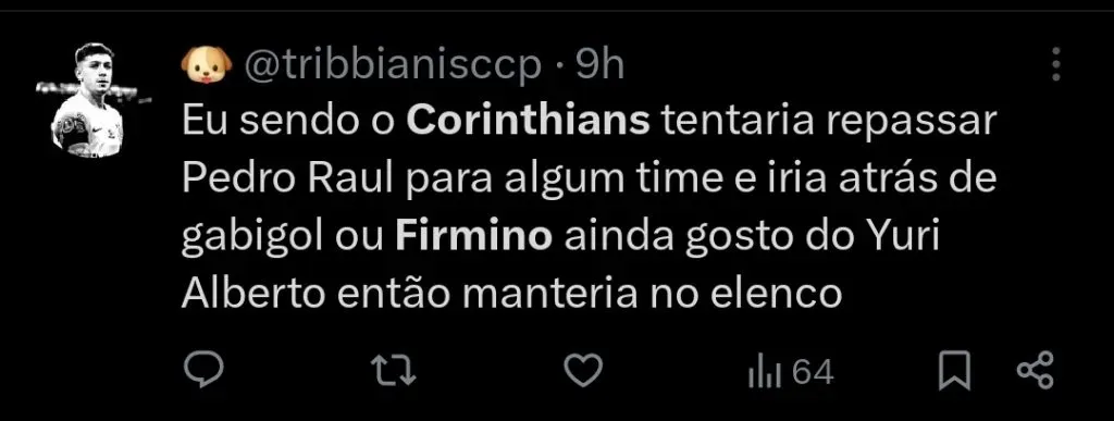 Não obstante, além do Mais Querido, Firmino também desperta o interesse de outras equipes do Brasileirão, sendo uma delas, o Corinthians, seu clube de coração.