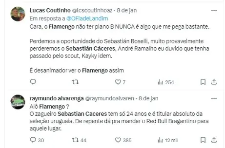 “O jogador já demonstrou que deseja a transferência, o Flamengo segue decidido a esperar com paciência, esticando a corda para chegar em valor intermediário que permita um acordo”, iniciou, completando: