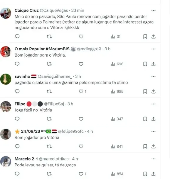 Do outro lado da moeda, o clube do Morumbi também segue avaliando propostas pelos jogadores que não tiveram e devem seguir sem espaço no plantel em 2024.