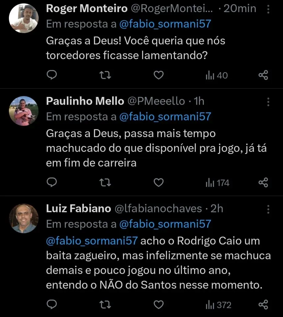 Segundo informação divulgada pelo jornalista Fábio Sormani, Rodrigo Caio também foi oferecido ao Santos, que, assim como o Botafogo, também optou por recusar o atleta.