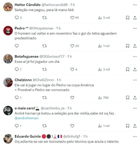 A lista deve sair em meados de maio, o que dá margem para que ele retorne imediatamente para os treinos e também para o campo. Para estar com a Seleção, o camisa 10 precisa voltar a atuar o mais rápido possível.