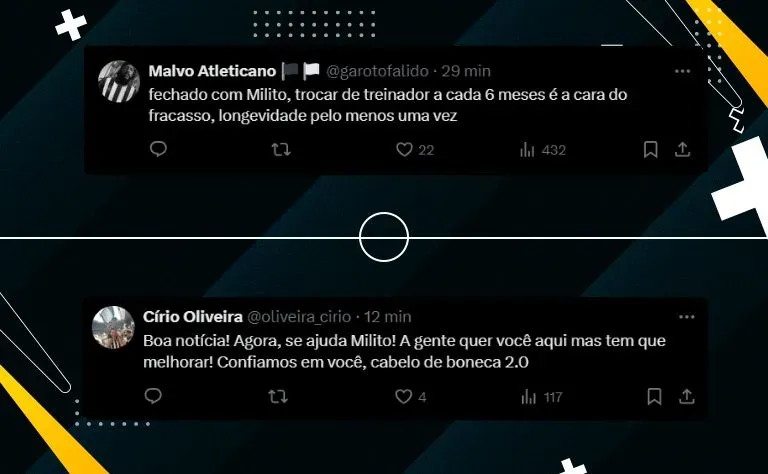 Por outro lado, há quem defenda que a diretoria deve focar na contratação de novos reforços e dar a Milito a liberdade para trabalhar. “Deixa o homem trabalhar… A SAF do Galo tem que cobrar é jogador,” opinou outro fã, acreditando que o problema não está apenas no treinador, mas também na execução dos jogadores em campo.