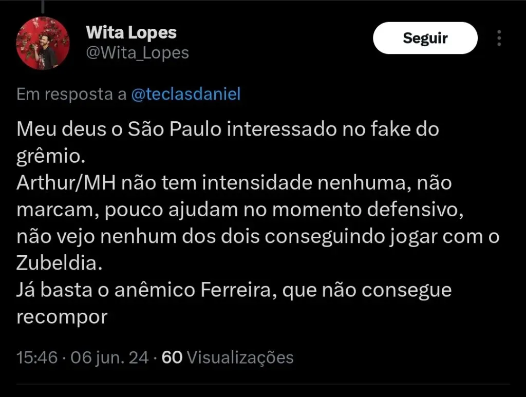 O setorista Teclas Daniel informa que o São Paulo está interessado em poder contar com Arthur no seu elenco para a temporada.