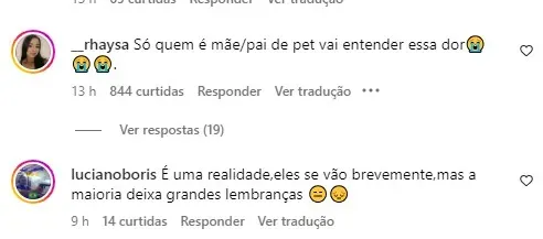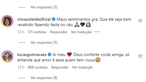 Diversos famosos se solidarizaram com a perda do casal e deixaram comentários no post. “Deus conforte vocês amiga, só entende que amor é esse quem tem viu“, disse Lucas Guimarães. “Meus sentimentos Gra“, disse o influenciador Theodoro.